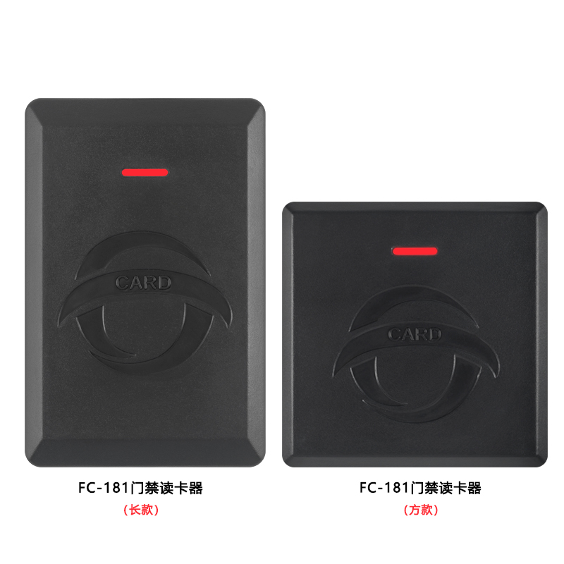 FC-181门禁读卡器根据读卡类型可选型号:FC-181E(ID卡:长款/方款)或FC-181M(IC卡:长款/方款