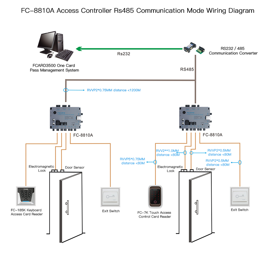 FC-8810A one door access controller RS485 communication mode wiring diagram
