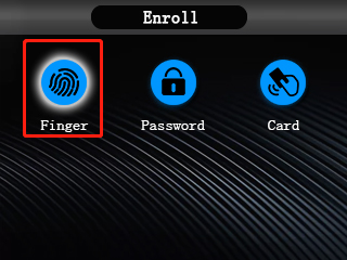 Use the ◁ and ▷ direction keys to select the [User Management] menu, select [Add User], enter the new interface, and select to register ‘fingerprint’.