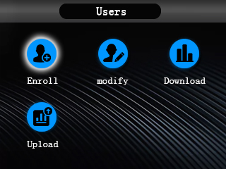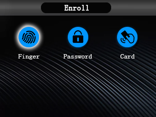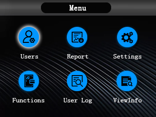 Press the ‘MENU’ key, enter the administrator password or verify the administrator’s fingerprint to enter the main menu interface.