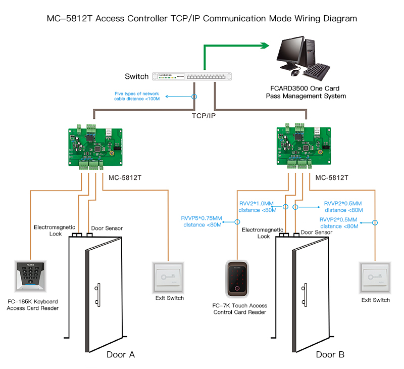 Hello, thank you for purchasing our company’s access control products, in fact, the installation of our company’s access control system is very simple, for your convenience, I will send you the MC-5812T one door access control board TCP/IP communication wiring diagram, to provide you with reference learning, if you encounter problems in the process of using, please call the free consultation number: 400-688-6663