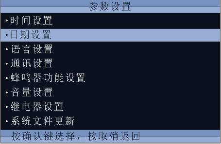 (3)选择【菜单界面】中“参数设置”,按“确定”键,出现如下界面: