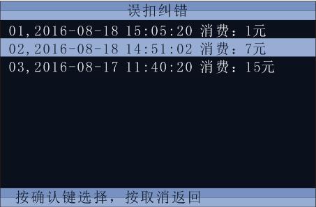 2)在【菜单界面】中选择“误扣纠错”,按“确定”键,弹出如下界面