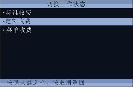 1)选择【菜单界面】中的“工作模式”,按“确定”键,进入如下界面,可选择需使用的收费方式。和直接按“模式”键的作用是一样的。