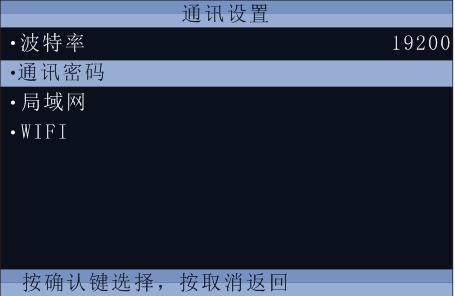 3、选择“通讯设置”,按“确定”键,出现如下界面: