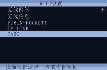 4)选择“WIFI设置”,按“确定”键,出现如下界面:
