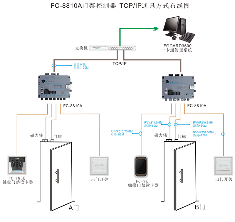 您好,感谢您对我公司的关注,为了您更加方便了解我公司的产品,现在给您提供的是FC-8810A单门门禁控制器TCP/IP通讯方式的布线图,希望能帮您解决问题,同时也期待您的光临,免费咨询电话:400-688-6663。