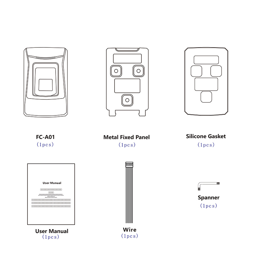 FC-A01 fingerprint card reader is a fingerprint card reader device that integrates fingerprint + card reader. It is responsible for reading and collecting fingerprint information and sending the access control board. It has no personnel data processing capability and is only used for card reader and fingerprint collection. . FC-A01E sends fingerprint information to the access control board via RS485.