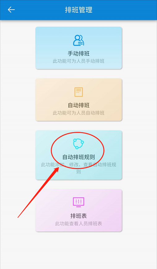 点击【考勤】-【排班管理】-【自动排版规则】-【添加】。如下图所示: