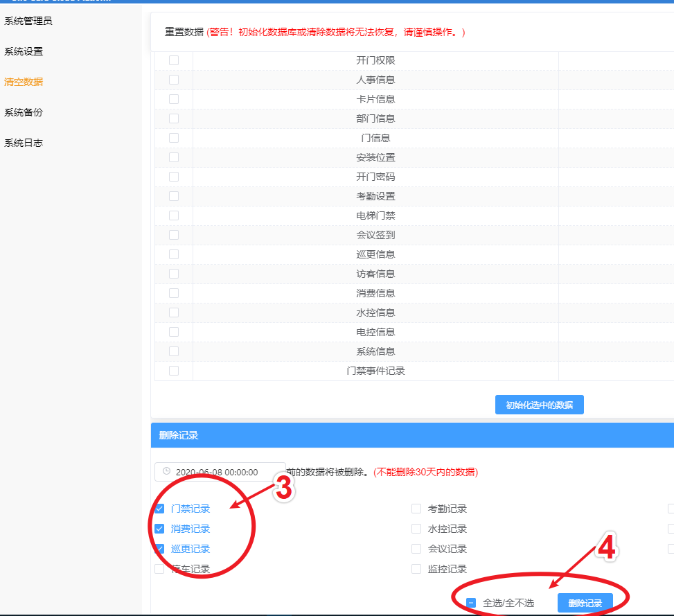 选择删除记录里面的某个记录(注意:初始化项目里面的选项谨慎删除)