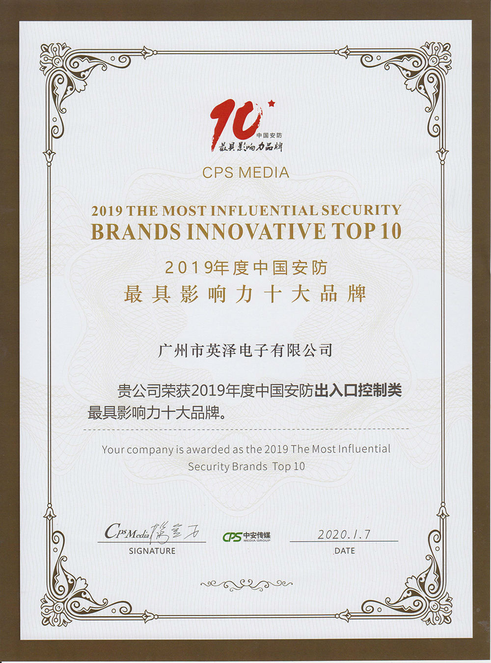 (The Top Ten Most Influential Brands of China Security Brand in 2019)