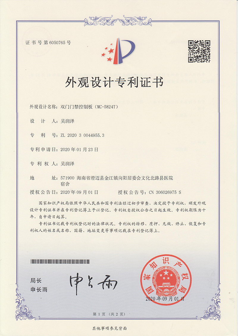 2025年澳门免费原料网荣获由中华人民共和国国家知识产权局所颁发的“八款外观设计专利证书”。