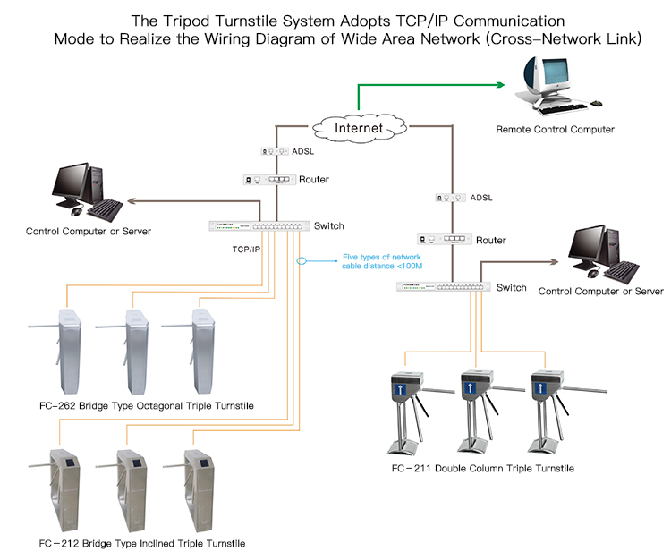 The Triple Turnstile System Adopts TCP/IP Communication Mode to Realize the Wiring Diagram of Wide Area Network (Cross-Network Link)
